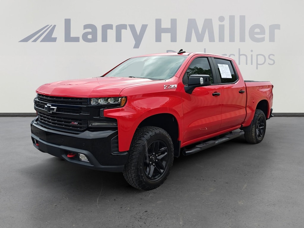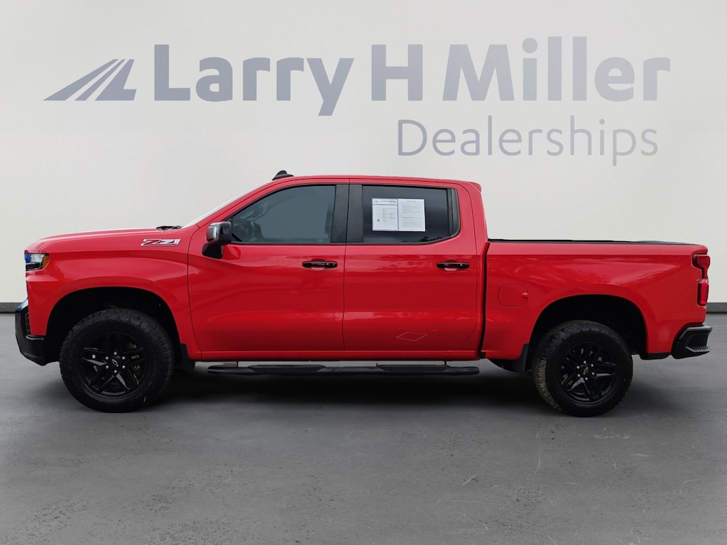 This 2019 Red Hot Chevrolet Silverado 1500 LT Trail Boss 4WD is well equipped and includes these features and benefits: Convenience Package II (120-Volt Bed Mounted Power Outlet, 120-Volt Instrument Panel Power Outlet, 2 USB Ports, HD Radio, HD Rear Vision Camera, Power Sliding Rear Window w/Rear Defogger, Premium Bose 7-Speaker Sound System, Radio: Chevrolet Infotainment 3 Plus System, SiriusXM Radio, and Universal Home Remote), Convenience Package w/Buckets Seats (10-Way Power Driver Seat w/Lumbar, Dual-Zone Automatic Climate Control, Floor Mounted Console, Front Bucket Seats, Heated Driver & Front Passenger Seats, Heated Steering Wheel, and Manual Tilt/Telescoping Steering Column), Leather Package, Preferred Equipment Group 2LT (12-Volt Rear Auxiliary Power Outlet, 170 Amp Alternator, 2 USB Ports (First Row), 4-Way Manual Driver Seat Adjuster, 4.2" Diagonal Color Display Driver Info Center, 6-Speaker Audio System, All-Weather Floor Liner (LPO) (AAK), Auxiliary External Transmission Oil Cooler, Bluetooth® For Phone, Chevrolet Connected Access, Chevrolet w/4G LTE, Color-Keyed Carpeting Floor Covering, Compass, Deep-Tinted Glass, Dual Exhaust w/Polished Outlets, Electric Rear-Window Defogger, Electrical Lock Control Steering Column, Electronic Cruise Control, Front LED Fog Lamps, Heavy-Duty Rear Locking Differential, High Gloss Black Grille, High Gloss Black Mirror Caps, Hitch Guidance, Keyless Open & Start, Leather Wrapped Steering Wheel, LED Cargo Area Lighting, Manual Tilt Wheel Steering Column, OnStar & Chevrolet Connected Services Capable, Performance Red Recovery Hooks, Power Door Locks, Power Front Windows w/Driver Express Up/Down, Power Front Windows w/Passenger Express Down, Power Rear Windows w/Express Down, Rear 60/40 Folding Bench Seat (Folds Up), Rear Dual USB Charging-Only Ports, Rear Vision Camera, Remote Vehicle Starter System, Single-Zone Manual/Semi-Automatic Air Conditioning, Steering Wheel Audio Controls, and Theft Deterrent System (Unauthorized Entry)), Safety Package (Lane Change Alert w/Side Blind Zone Alert, Perimeter Lighting, Rear Cross Traffic Alert, and Ultrasonic Front & Rear Park Assist), Suspension Package (High Capacity Air Filter and Hill Descent Control), Trailering Package, Up-Level Rear Seat w/Storage Package, 8-Speed Automatic, 4WD, Black Leather, 3.23 Rear Axle Ratio, 4-Wheel Disc Brakes, 40/20/40 Front Split-Bench Seat, 6 Speakers, ABS brakes, Air Conditioning, Alloy wheels, AM/FM radio: SiriusXM, Apple CarPlay/Android Auto, Brake assist, Cloth Seat Trim, Delay-off headlights, Driver door bin, Driver vanity mirror, Dual front impact airbags, Dual front side impact airbags, Electronic Stability Control, Front anti-roll bar, Front Center Armrest w/Storage, Front fog lights, Front reading lights, Front wheel independent suspension, Fully automatic headlights, Heated door mirrors, Illuminated entry, Integrated Trailer Brake Controller, Low tire pressure warning, Occupant sensing airbag, Off-Road Suspension w/2" Lift, Outside temperature display, Overhead airbag, Overhead console, Panic alarm, Passenger door bin, Passenger vanity mirror, Power door mirrors, Power steering, Power windows, Premium audio system: Chevrolet Infotainment System 3, Radio data system, Radio: Chevrolet Infotainment 3 System, Rear reading lights, Rear step bumper, Rear window defroster, Remote keyless entry, Security system, Speed control, Speed-sensing steering, Split folding rear seat, Steering wheel mounted audio controls, Tachometer, Tilt steering wheel, Traction control, Trip computer, Variably intermittent wipers, Voltmeter, and Wheels: 18" x 8.5" Black Painted Aluminum. 8-Speed Automatic, 4WD, Black Leather. Recent Arrival! Clean CARFAX.Odometer is 35451 miles below market average!Larry H Miller Casa Chevrolet located on Lomas and Louisiana, just 2 blocks south of I-40. We service metro Albuquerque, South Valley, Rio Rancho, Farmington, Las Cruces, Gallup, Santa Fe, and Surrounding New Mexico cities.
