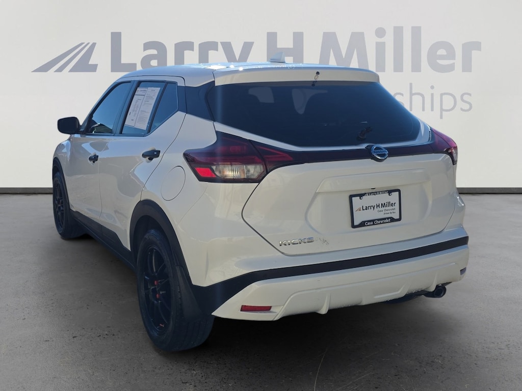 This 2021 Fresh Powder Nissan Kicks S FWD is well equipped and includes these features and benefits: 16" Steel Wheels w/Full Covers, 3.927 Axle Ratio, 6 Speakers, ABS brakes, Air Conditioning, AM/FM radio, Apple CarPlay/Android Auto, Auto High-beam Headlights, Blind Spot Warning, Brake assist, Bumpers: body-color, Carpeted Floor Mats w/Cargo Mat, Center Armrest w/Storage, Cloth Seat Trim, Driver door bin, Driver vanity mirror, Driver's Seat Mounted Armrest, Dual front impact airbags, Dual front side impact airbags, Electronic Stability Control, Front anti-roll bar, Front Bucket Seats, Front reading lights, Front wheel independent suspension, Fully automatic headlights, Illuminated entry, Knee airbag, Low tire pressure warning, Occupant sensing airbag, Outside temperature display, Overhead airbag, Panic alarm, Passenger door bin, Passenger vanity mirror, Power door mirrors, Power steering, Power windows, Radio data system, Radio: AM/FM Audio System, Rear Parking Sensors, Rear reading lights, Rear side impact airbag, Rear window defroster, Rear window wiper, Remote keyless entry, Speed control, Splash Guards Grain (4 Piece), Split folding rear seat, Sport steering wheel, Steering wheel mounted audio controls, Tachometer, Telescoping steering wheel, Tilt steering wheel, Traction control, Trip computer, and Variably intermittent wipers. Recent Arrival! CARFAX One-Owner.